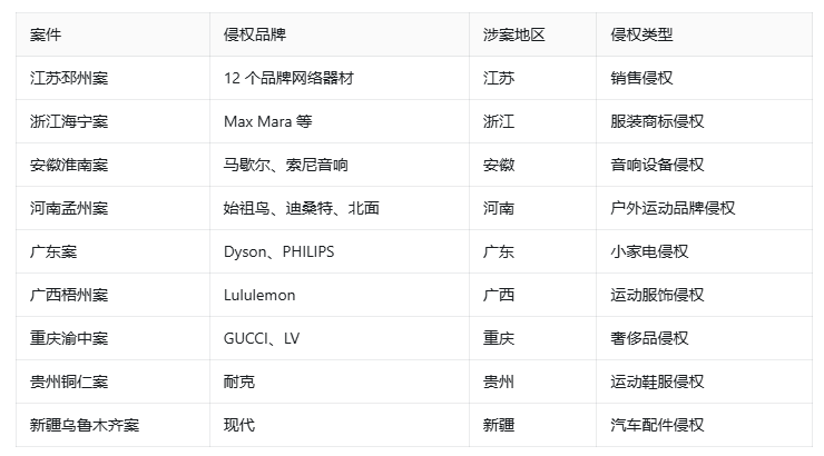 案件二至十:国际品牌维权系列案